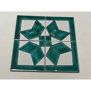 Décor Faïence Tunisien - Vert et Noir, Lot de 4 carreaux