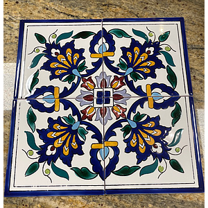 Décor Faïence Tunisien - Bleu Vert Jaune - 15 x 15 cm, Vendu à la pièce